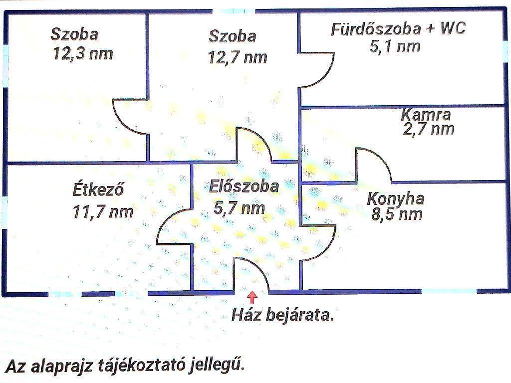 Az ingatlan jó elosztású, kiváló állapotban van, kívül-belül folyamatosan karbantartott. A víz- és villanyvezetékek cserélésre kerültek 5 éve. Fűtése konvektoros, a meleg vizet villanybojler szolgáltatja. A házban 2 szoba, étkező, konyha, előszoba, spájz, fürdőszoba + WC lett kialakítva.
