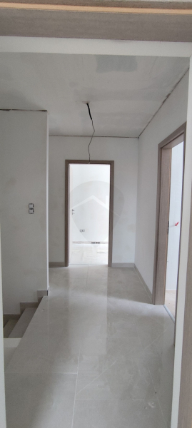 A Porotherm 30-as téglából 10 cm-es hőszigeteléssel készült lakás földszintjén amerikai konyhás nappali, 1 hálószoba, fürdőszoba, tárolóhelyiség, külön wc, emeletén pedig 2 hálószoba, fürdőszoba wc-vel és gardrób került kialakításra.