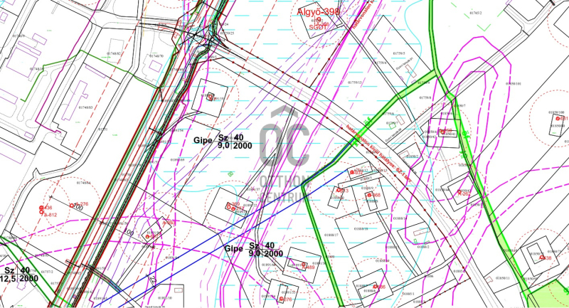 Közművek : víz , csatorna ,gáz , áram (3x500A-ig ) telekhatáron