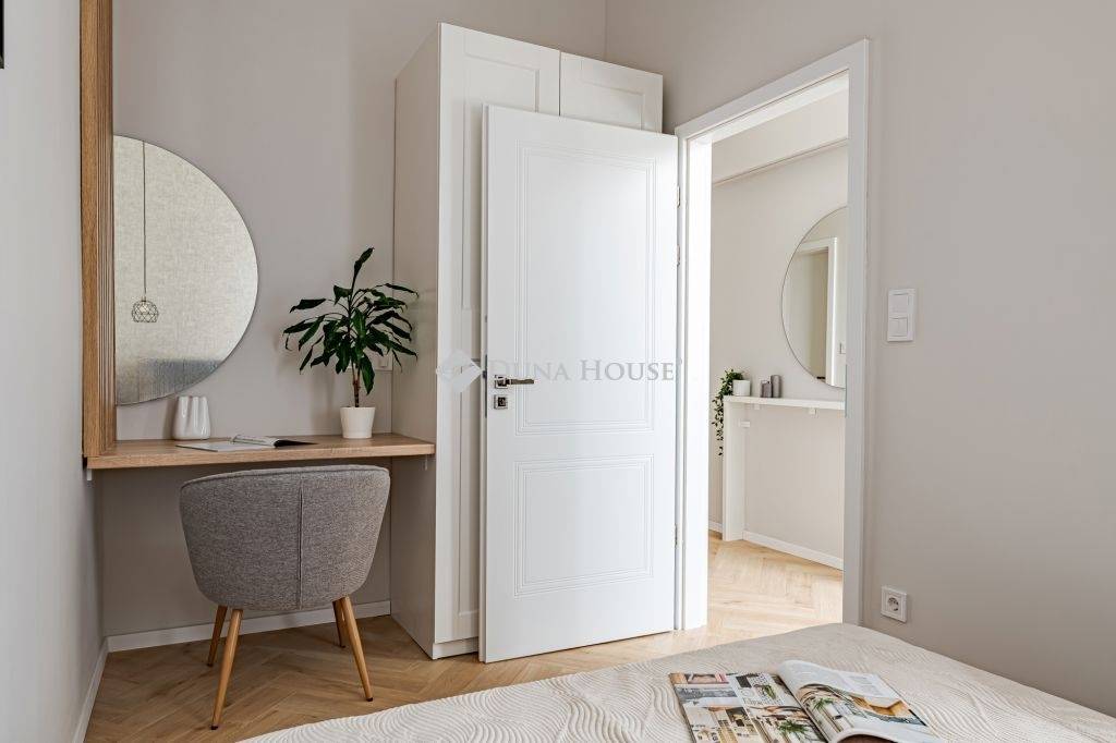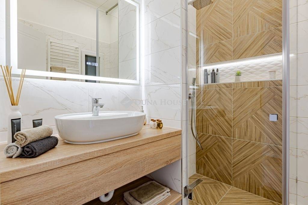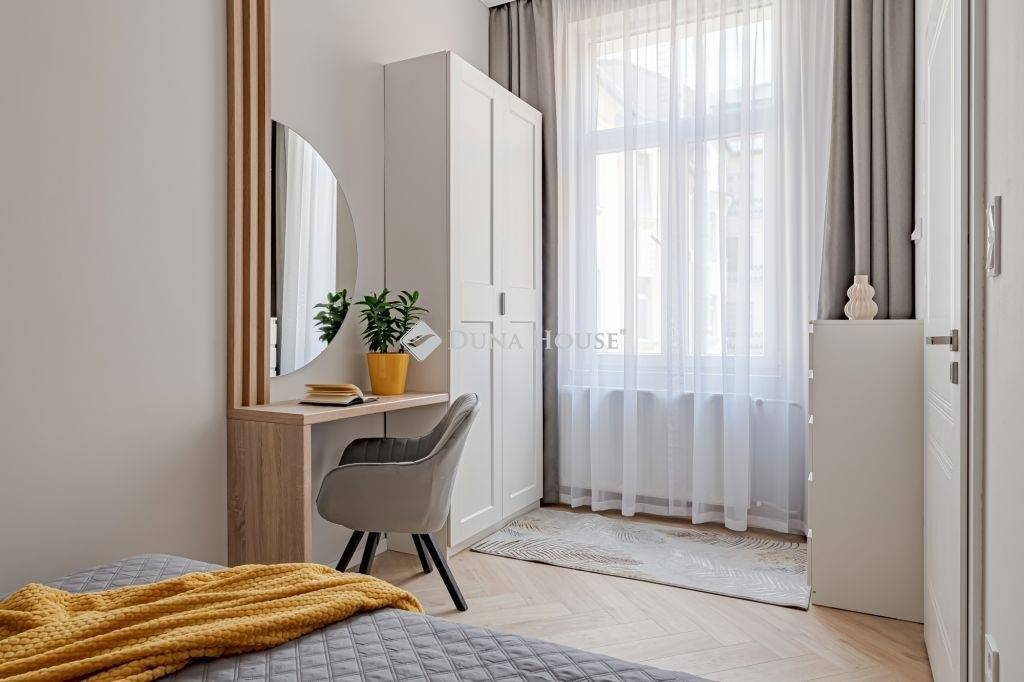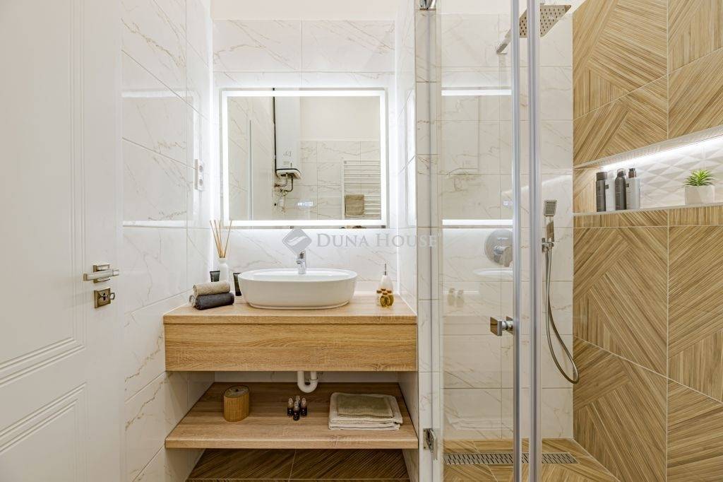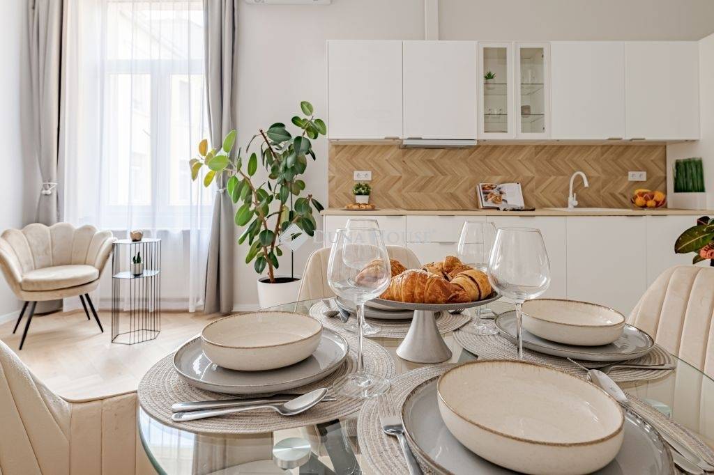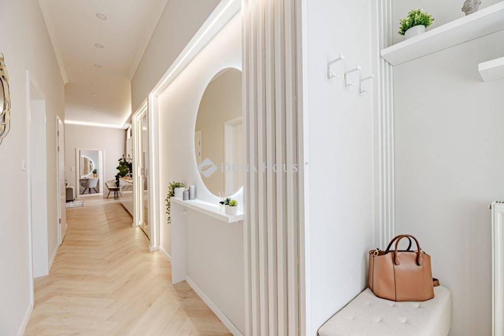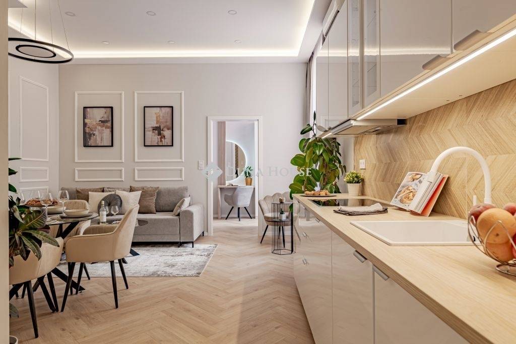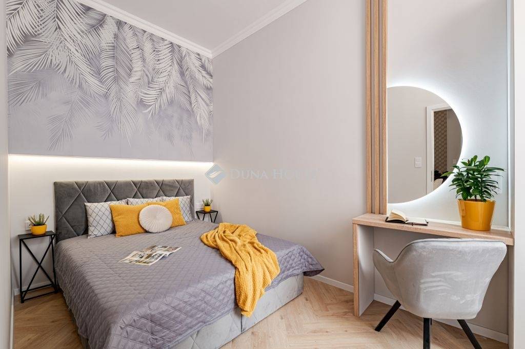 Prémium lakás Budapest szívében Eladásra kínálunk egy 60 m²-es, nappali + 2 hálószobás lakást az V. kerület egyik legkedveltebb utcájában, liftes ház 3. emeletén. A teljes körű, prémium minőségű felújítás 2025 június végére készül el.A lakás a folyosó végén található, így csendes, privát, a bejárat mellett saját teraszrész is kialakításra kerül. Átgondolt elrendezés, két különnyíló háló, modern fürdő, külön WC, gépesített konyha és világos terek jellemzik.Házközponti fűtés, új villanybojler, hő- és hangszigetelt ablakok redőnnyel, klíma a nappaliban. A társasház kívülről rendezett, a belső terek felújítása folyamatban, hamarosan befejezésre kerül.Pár perc sétára metró, Erzsébet tér, éttermek, üzletek – ideális választás otthonnak vagy befektetésnek is.