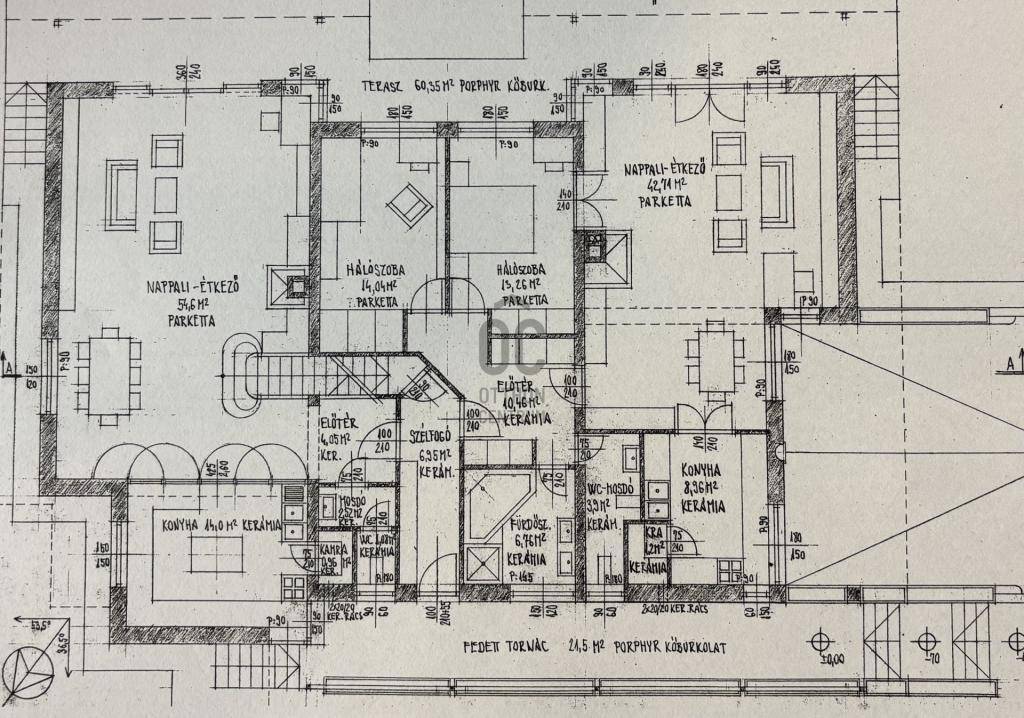 A földszinten két lakrész található, melyek a bejáratot követően teljesen külön használhatóak, csupán a szélfogó közös.