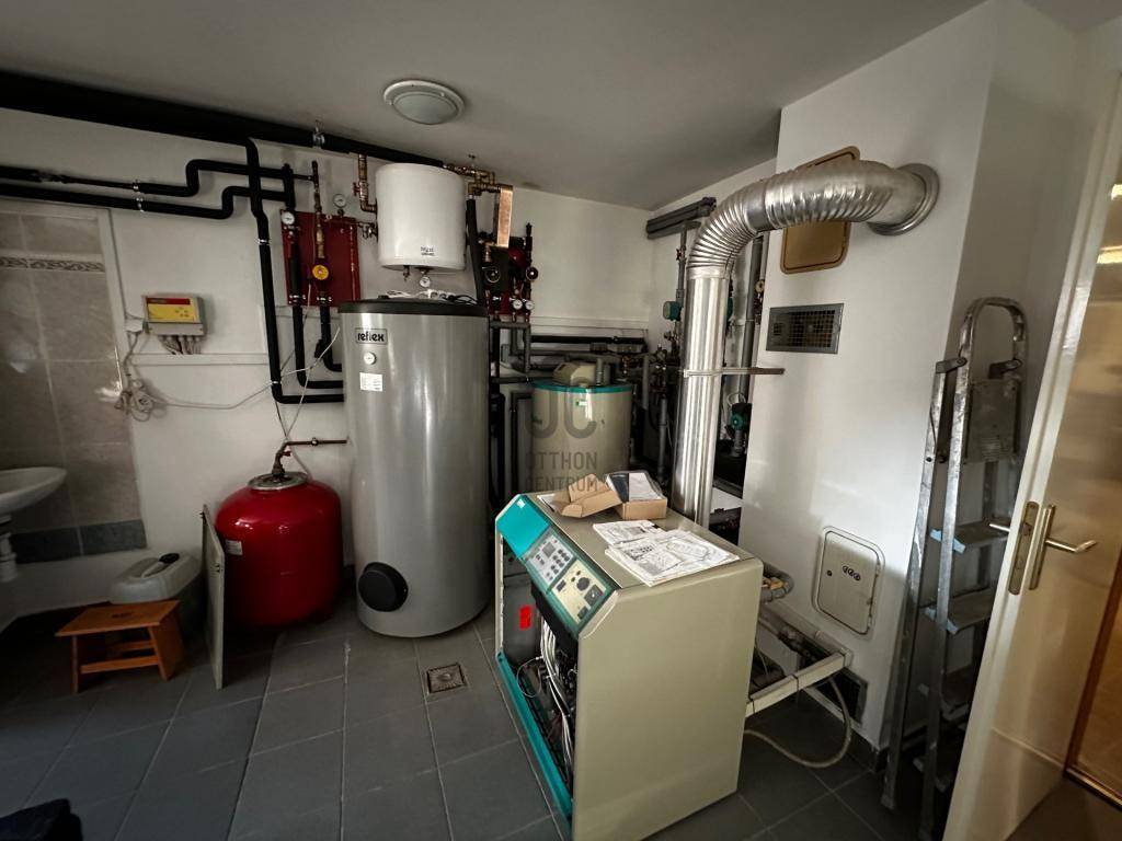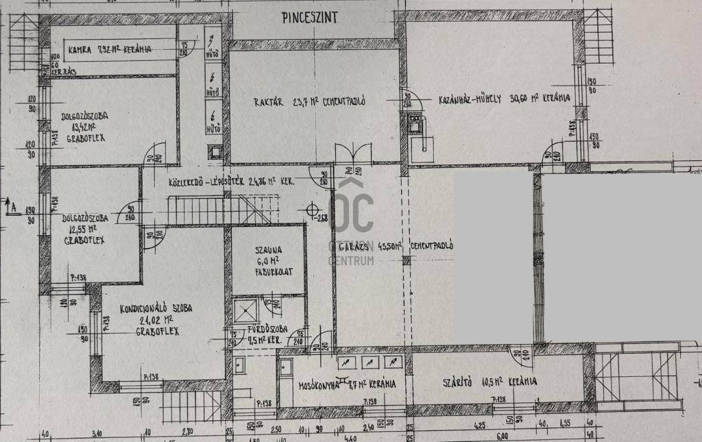 A pince a közös szélfogón keresztül közelíthető meg, saját berendezett műhellyel, dupla garázzsal, szaunával és a kiszolgáló helyiségek is itt található.