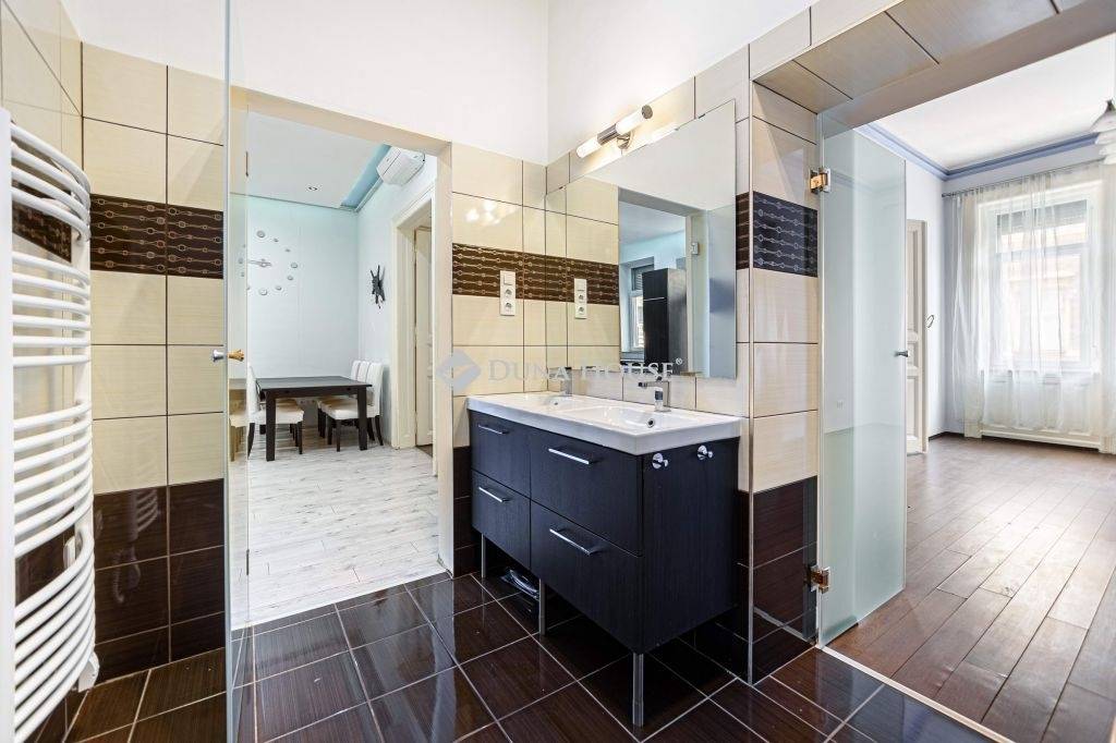 Otthon Start Hitellel is megvásarolható!Világos, extrákkal felszerelt nagypolgári lakás a VII. kerület szívében Hernád utcában!Eladó egy különleges hangulatú, világos, 86 m²-es, igényesen kialakított, 2 szobás nagypolgári lakás Budapest egyik legkedveltebb, folyamatosan fejlődő városrészében, a VII. kerületben, a történelmi hangulatú Hernád utcában!A második emeleten elhelyezkedő ingatlan egy rendezett, lift nélküli társasházban található, ahol a klasszikus belvárosi miliő ötvöződik a modern kényelemmel.86 m² alapterületen, 2 világos tágas szoba, konyha étkezővel, nagyméretű fürdőszoba, külön wc, tároló és egy edzősarok szaunával lett kialakítva.A konyhában Modern stílusú beépített gépesített konyhabútor található. Konyhasziget kialakítással rendkívül praktikussá vált a hely kihasználása.A magas belmagasságot kihasználva minden helyiségben hangulatvilágítás, és számos spot lámpa lett beépítve, ezzel a világítás kialakítással vegyítették a modern és polgári hatást.Padlófűtés van az egész lakásban, három db Samsung inverteres klíma teszi lehetővé, hogy minden helyiségben a hűtés-fűtés külön szabályozható legyen. A szobákban parketta van, és az étkező egy részén is, a vizes helyiségek modern csempeburkolatot kaptak. Az összes nyílászáró kicserélésre került, új műanyag redőnyös, beépített szúnyoghálós ablakokra, és belső minőségi ajtókra. A tágas fürdőszobában dupla mosdó és masszázsfunkciós nagyméretű sarokkád kapott helyet, A szobából és az étkezőből is megközelíthető, hangulatos üvegajtón keresztül.A wc külön helyiségben kapott helyet kézmosóval. Egy kisebb méretű tároló is található a lakásban.A wellnes sarokban egy Wellis Infraszauna és edzősarok van.A fürdő, tároló és wc is ablakkal rendelkezik, ezáltal biztosított a szellőztetés is.Műszaki állapot:10 éve teljes körű elektromos és vízvezeték-csere, padlófűtés kiépítés és nyílászáró csere történt, A fűtést Vailant cirkó kazán biztosítja. Wellis Infraszauna lett beépítve. Új műanyag nyílászárók, redőnnyel és szúnyoghálóval. Riasztó rendszer is van. 3 db inverteres Samsung hűtő-fűtő klíma. A tulajdonos folyamatosan gondoskodik az ingatlan minőségi állag megőrzéséről. A ház rendezett, csendes a lakóközösség.A környék: A Hernád utca a VII. kerület egyik csendesebb, ám kiválóan megközelíthető része, ahol a századfordulós pesti hangulat máig érzékelhető. A környék történelmi múltú, közelében található a híres Damjanich utca, a Keleti pályaudvar, valamint a Városliget is csupán pár perc séta. A környék kitűnő infrastruktúrával rendelkezik: boltok, iskolák, kávézók, gyógyszertár, tömegközlekedés (metrótól a trolibuszig minden elérhető).Ez a lakás ideális választás azoknak, akik a belvárosi életstílust keresik, de nem akarnak kompromisszumot kötni a modern kényelemmel.