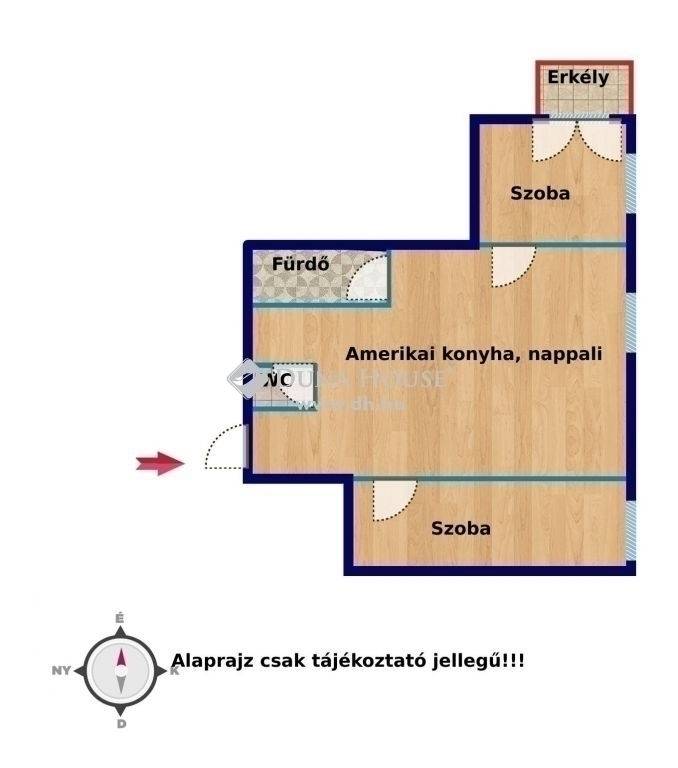Tágas amerikai konyha , nappali, valamint külön fürdő wc.