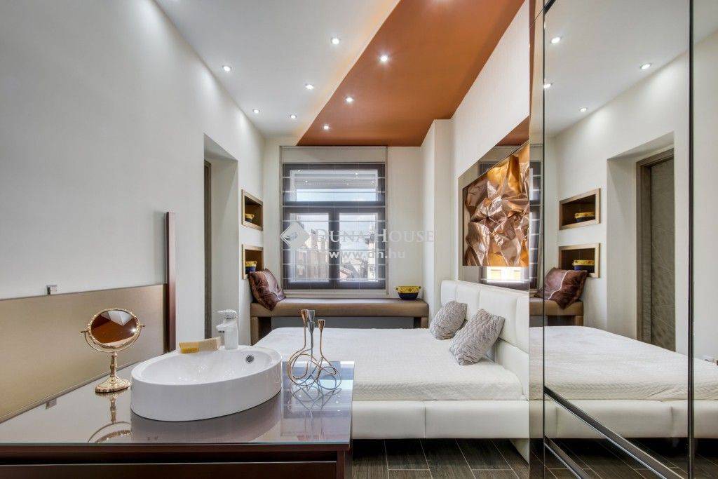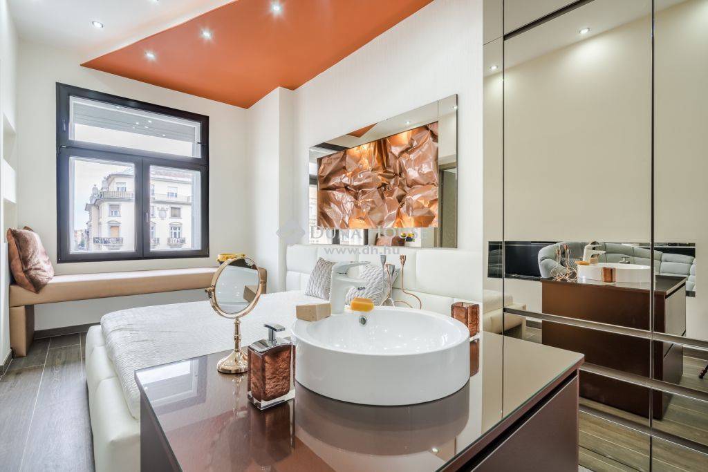ZSINAGÓGÁRA NÉZŐ PRÉMIUM KATEGÓRIÁS LUXUSLAKÁS!!Kiemelt lokácíóban, a város szívében, V. Károly krt-on , későeklektikus házban, kínálunk eladásra, egy magas emeleti, amerikai konyhás nappali + 2 KÜLÖN BEJÁRATÚ hálós, AZONNAL KÖLTŐZHETŐ, magas minőségben, belsőépítész által felújított, KLÍMÁVAL FELSZERELT, padlófűtéses luxusingatlant, az összes bútorzattal az árban.FELSZERELTSÉG:Elektromos redőnyök, Porcelanosa csempék, 240cm-es 120-as burkolatok, valódi tölgy parketta, infraszauna, műgyantás étkezőasztal, egyedi készítésű bútorok és dekorációk.Tekintse meg ezt a csodálatos ingatlant, a megtekintéssel kapcsolatban várom hívását.