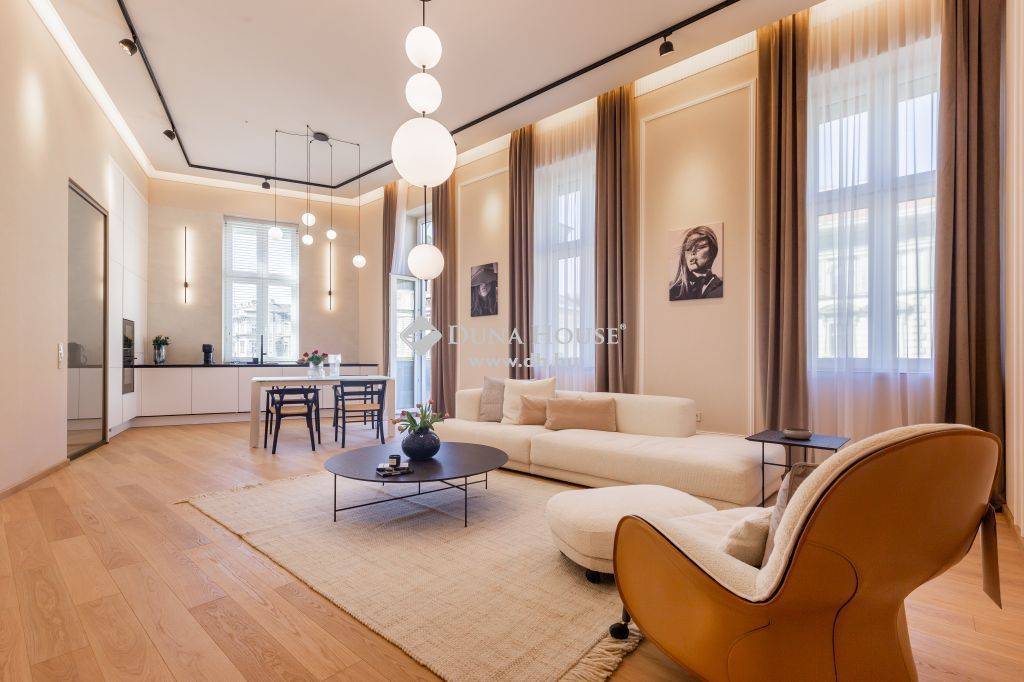 KIZÁRÓLAG KÍNÁLATUNKBAN!Luxusmódon felújított, két erkéllyel rendelkező, bútorozott ingatlant kínálunk eladásra a Bazilikára kilátással!Az ingatlan 81m2, teljes mértékben felújított és berendezett.Hatalmas, napfényes amerikai konyhás nappali, 2 hálószoba, 2 fürdőszoba található benne, belmagasság 4,1m.Nobila konyhastúdió által tervezett és gyártott, NEFF beépített elszívós indukciós főzőlap, sütő, mikró és mosogatógéppel felszerelt a konyha.AEG csúcstechnológiás mosógép, szárítógép, Tesla Thermex elektromos fűtés, padlófűtés,3X36 A eletromos hálózat, GREE X line, nagy teljesítményű klíma hűtés-fűtés,Booffi kád, mosdó és wc, gress burkolatok,GESSI csapok, DePadova lámpa, DePadova ülőgarnitúra, DePadova fotel, dohányzó és étkezőasztal az ingatlan tartozékai. Terasz bútorok ID Design. ADL alumínium szerkezetes matt festett üvegajtók!Padlóburkolat svéd padló. Egyedi gyártású beépített bútorok, egyedi gyártású bejárati ajtóKözponti helyen található, tömegközlekedéssel is jól megközelíthető.GOLDEN VISA ÜGYFELEKNEK IS KIEMELTEN AJÁNLJUK!黄金签证房地产在市中心的第六区,一套明亮、豪华的81平方米公寓正在出售,有一间带美式厨房的客厅、2间卧室和2间浴室,以及2个俯瞰大教堂的阳台。该房产执行精美,可与家具一起出售。