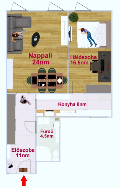 + 64nm, két egész szoba, tágas és ablakos konyha, zuhanyzós és ablakos fürdőszoba és minden teljesen fel is lett újítva.