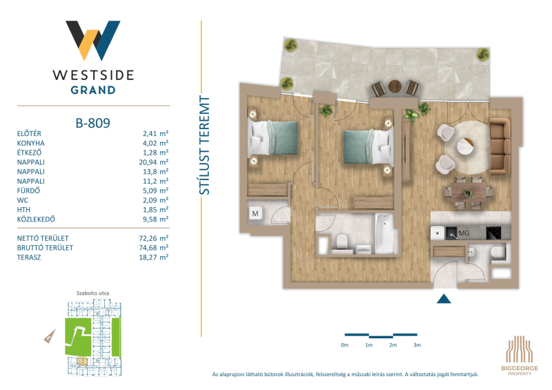 Budapest egyik leggyorsabban fejlődő kerületének központi területén, a XIII. kerületben, a Városligettől és a megújuló Nyugati pályaudvartól sétatávolságra épül. A Nyugati pályaudvar környéke az elkövetkezendő években szinte teljesen megújul, a XIII. kerületben elhelyezkedő Szabolcs utcában, illetve közvetlen környezetében számos új építésű ingatlan épült, melyek jelentős értéknövekedést kínálnak a környéken ingatlant vásárlóknak. A több ütemben megvalósuló lakóingatlanfejlesztések hatalmas zöld parkot ölelnek körül, így a lakók akár az erkélyen ülve is élvezhetik a csendet, nyugalmat és zöld környezetet egy központi, belvárosi környezetben is.