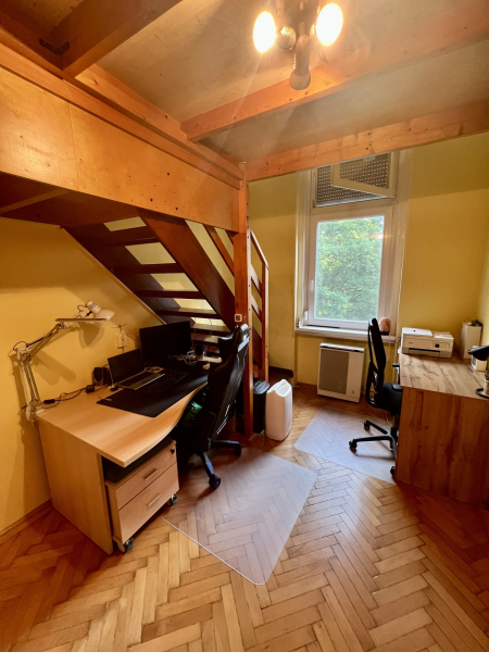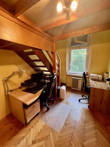 A Thököly úton található 52 nm alapterületű lakás két galériával ellátott (7 nm és 15 nm), így összesen 74 nm területűre növekedett élettér minden igényt kielégít.