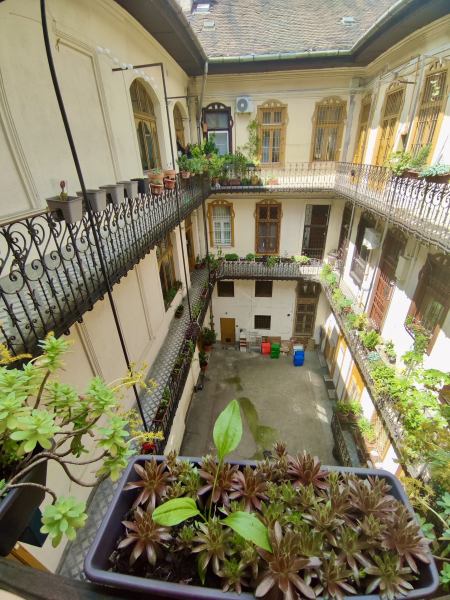 A lakás a belső udvaros körfolyosóról nyílik, előnye, hogy nem nyílik egy ablaka sem a folyosóra, így nem látnak be a lakók életterébe! Lakóközössége rendes és csendes. Gondnok, közös képviselő a házban lakik, a háznak van megtakarított pénze, melyből folyamatos újítások történnek.
