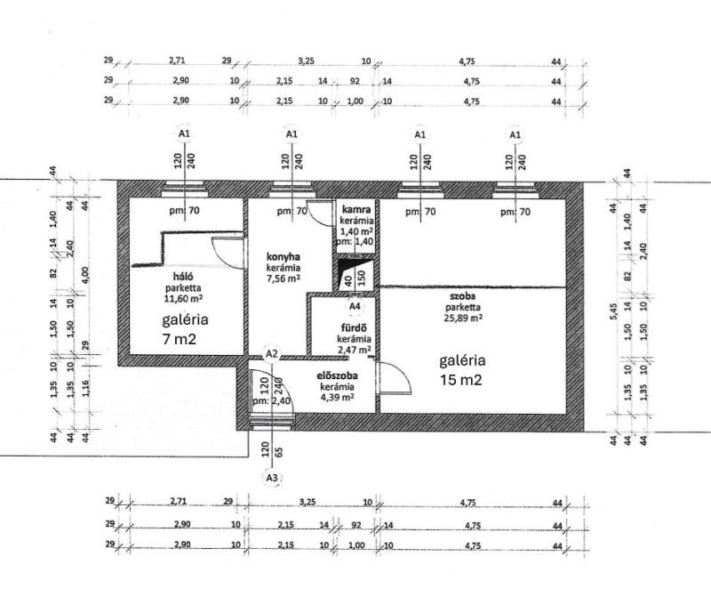 - szoba 25,89 nm, melyhez 15 nm galéria tartozik