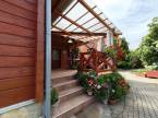 Az udvar végében kültéri fedett medence, szauna, grillező, bográcsozó lett kialakítva.