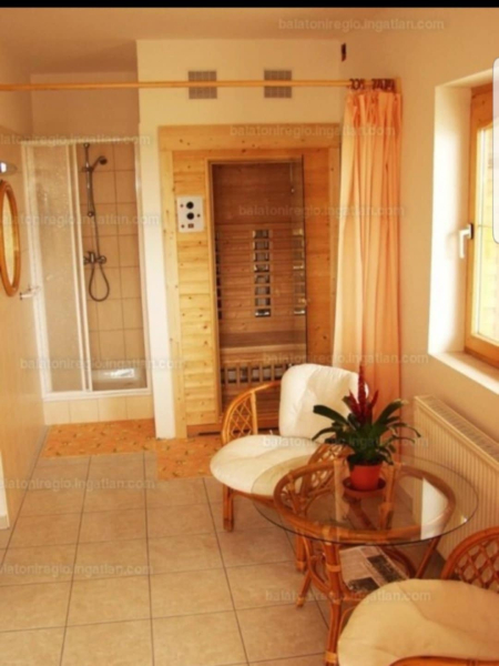Ebben az épületben A teraszról jutunk be a kis wellnes részlegbe, ahol egy szauna található zuhanyzóval, valamint egy mosókónyha, vagy masszázs helyiség.