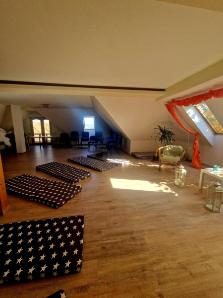 -Harmadik szint : A tetőtérben egy konferencia teremként funkcionáló önálló lakóegység található, konyhával és 2 mellékhelyiséggel, kis tároló helyiséggel.