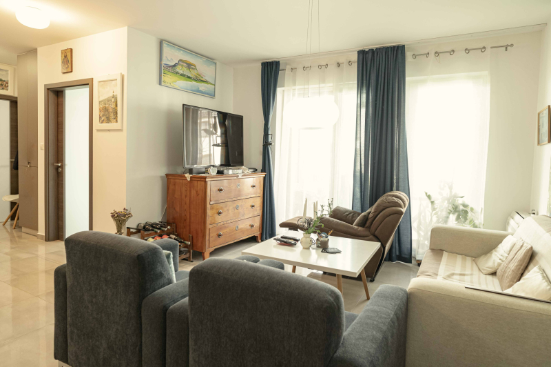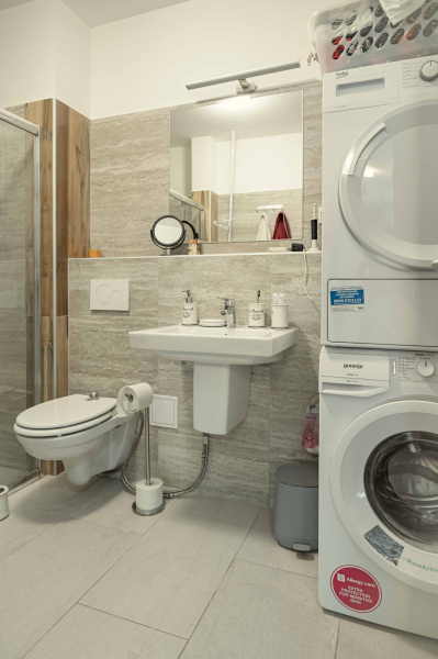 A modern kialakítású ingatlan praktikus elrendezésének köszönhetően kiváló választás állandó otthonnak, nyaralónak, vagy akár befektetésnek is: