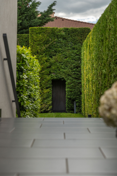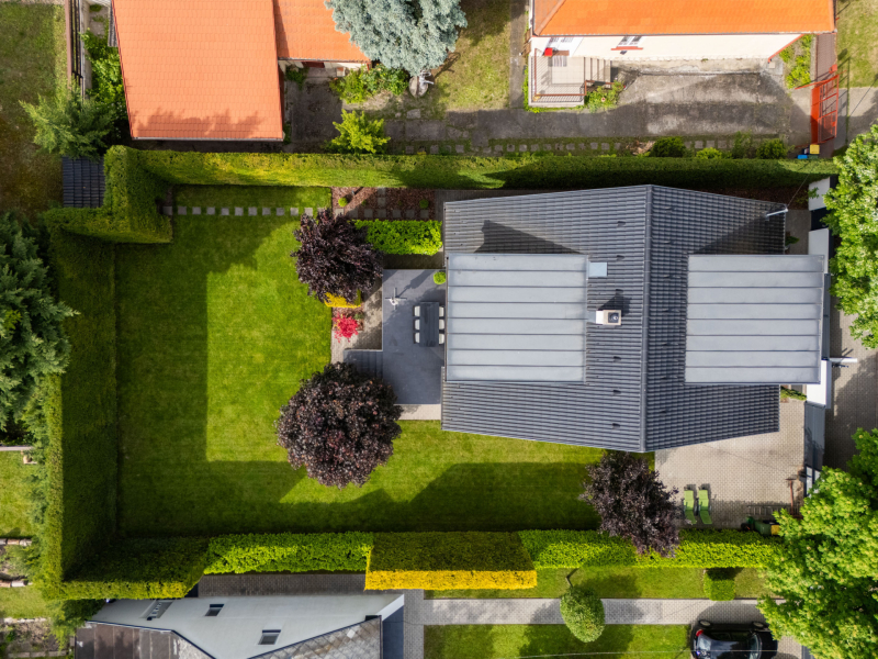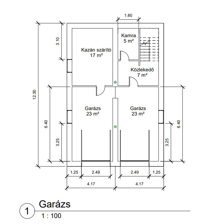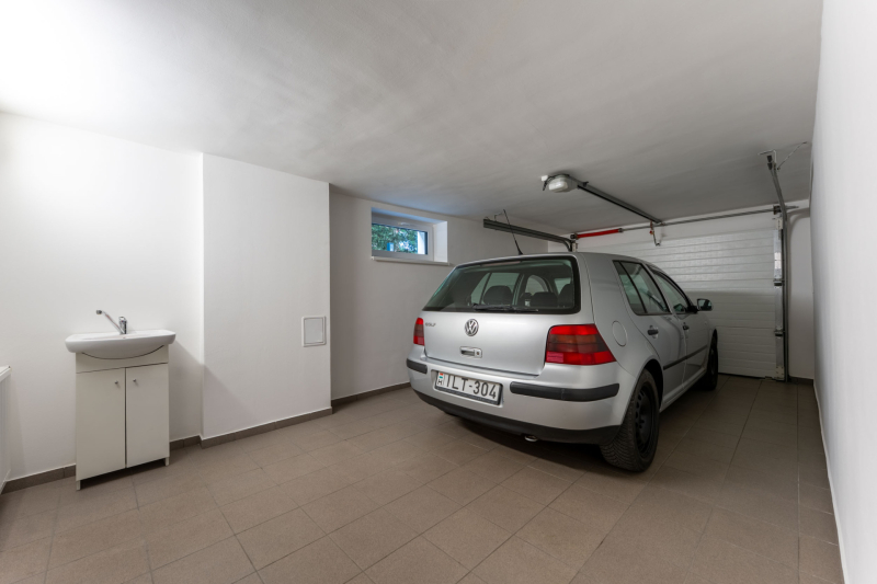 A földszint praktikus hátországként működik: itt található a kétállásos garázs, a kazánhelyiség, a mosókonyha és egy spejz. A külön bejárat és a kertkapcsolat lehetővé teszi, hogy a ház ezen része akár egyéni ritmusban is használható legyen, a napi működés háttérfolyamatai észrevétlenül történnek.