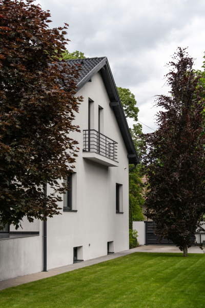 A ház három szintje tudatosan megtervezett ritmust követ: minden szinten olyan funkciók kaptak helyet, amelyek a család életszakaszaihoz és napi rutinjához igazodnak. Nincsenek kihasználatlan zugok, túlzsúfolt terek – csak jól átgondolt megoldások, letisztult átmenetek és kényelmes arányok.