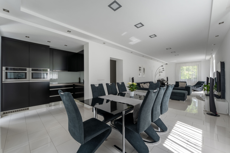 - 3 rétegű nyílászárók (kívül fekete alu, belül fehér műanyag)