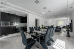 A középső szint a közös élet valódi terepe. A nappali, a konyha és az étkező térben összefonódik, mégis jól tagolt: egyszerre nyitott és otthonos. A nagy üvegfelületek beengedik a természetes fényt, a hátsó kertre nyíló terasz pedig szinte észrevétlenül bővíti tovább a belső teret – ideális helyszín reggeli kávéhoz, vasárnapi ebédhez vagy egy csendes, könyves esthez. Ugyanitt kapott helyet a szülői háló saját fürdőszobával, ami intimitást és visszavonulási lehetőséget biztosít.