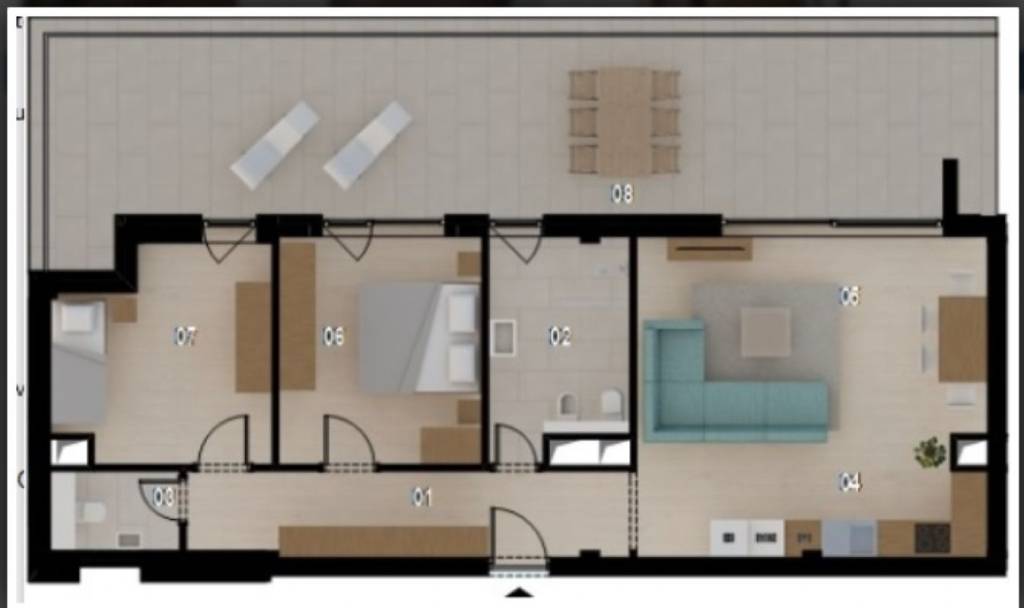 Terasz: Minden helyiségből, beleértve a fürdőszobát is, közvetlen kijárás a panorámás teraszra