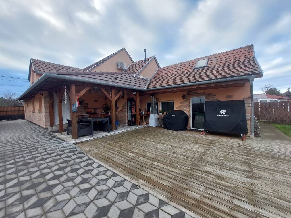 Az ingatlan 1000 m2-es telken fekszik, melyen elektromos kapuval ellátott dupla garázs, téglaépítésű melléképület (2 fakkos), tároló, fedett terasz kapott helyet.