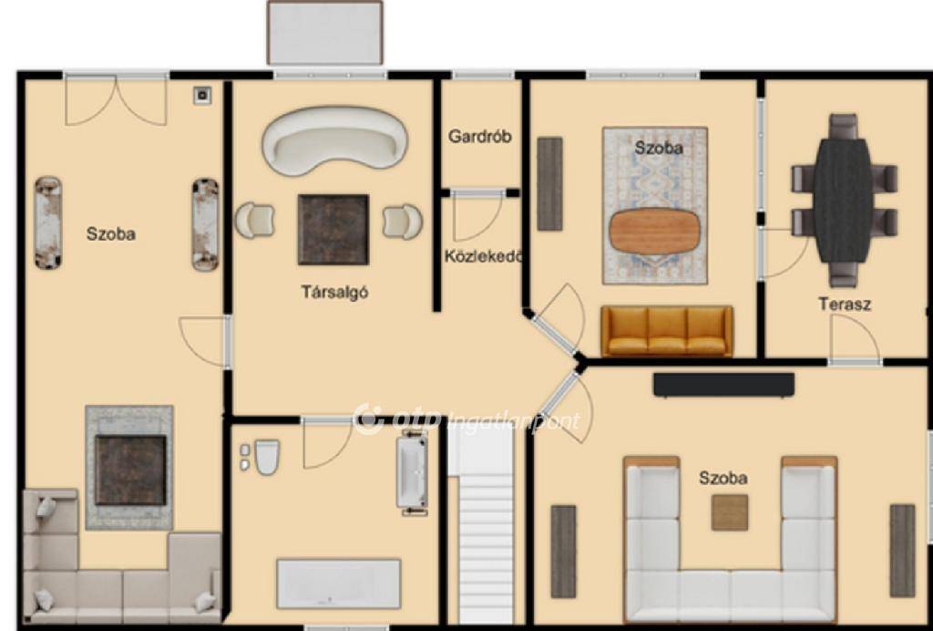 -a kiváló elosztású ingatlan földszinti belső helyiségben: előszoba, közlekedő, tágas nappali, folyosó, konyha + étkező, fürdőszoba, külön illemhely található