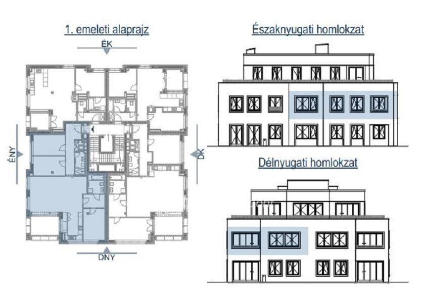 A hirdetésben szereplő lakás, az A épület 1. emeletén helyezkedik el, ÉNY tájolással, 106.3 m2 alapterülettel, mely életteret tovább növeli a 9,94 m2 alapterületű terasz.