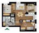 A lakás helyiségei: előszoba, WC, szoba, amerikai konyhás nappali, szoba, fürdőszoba.