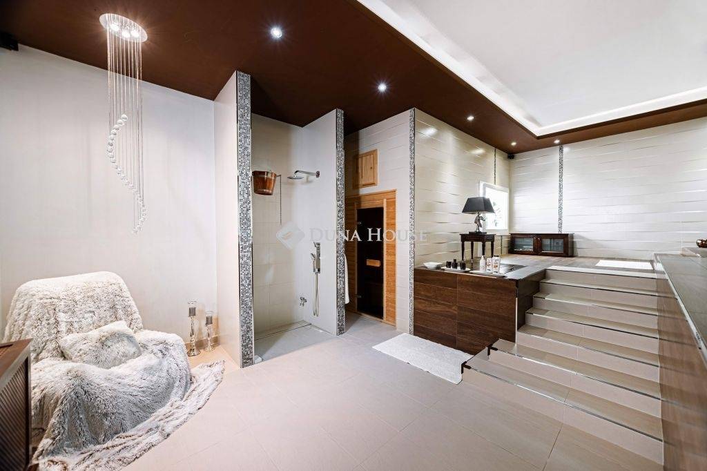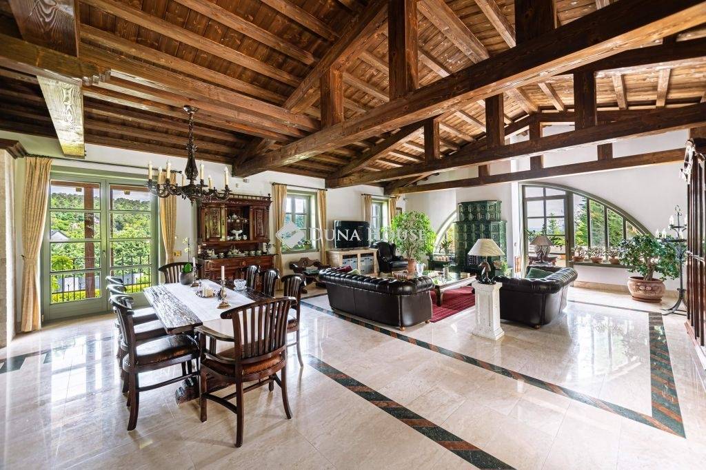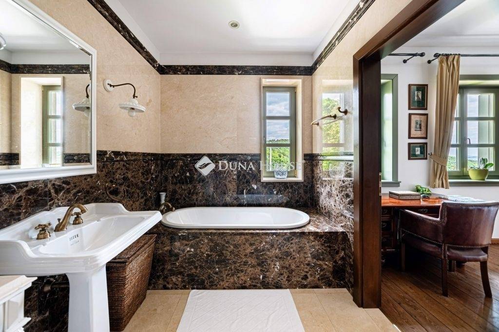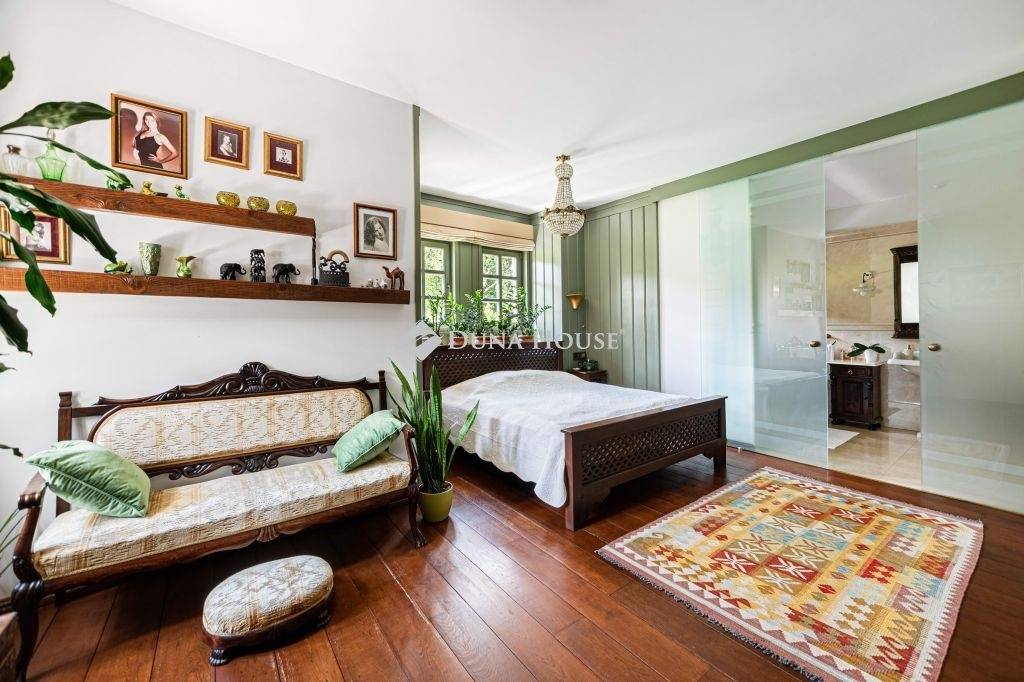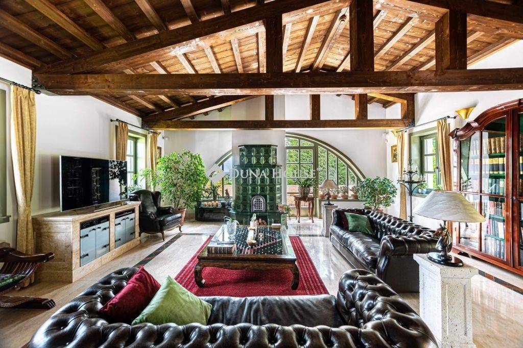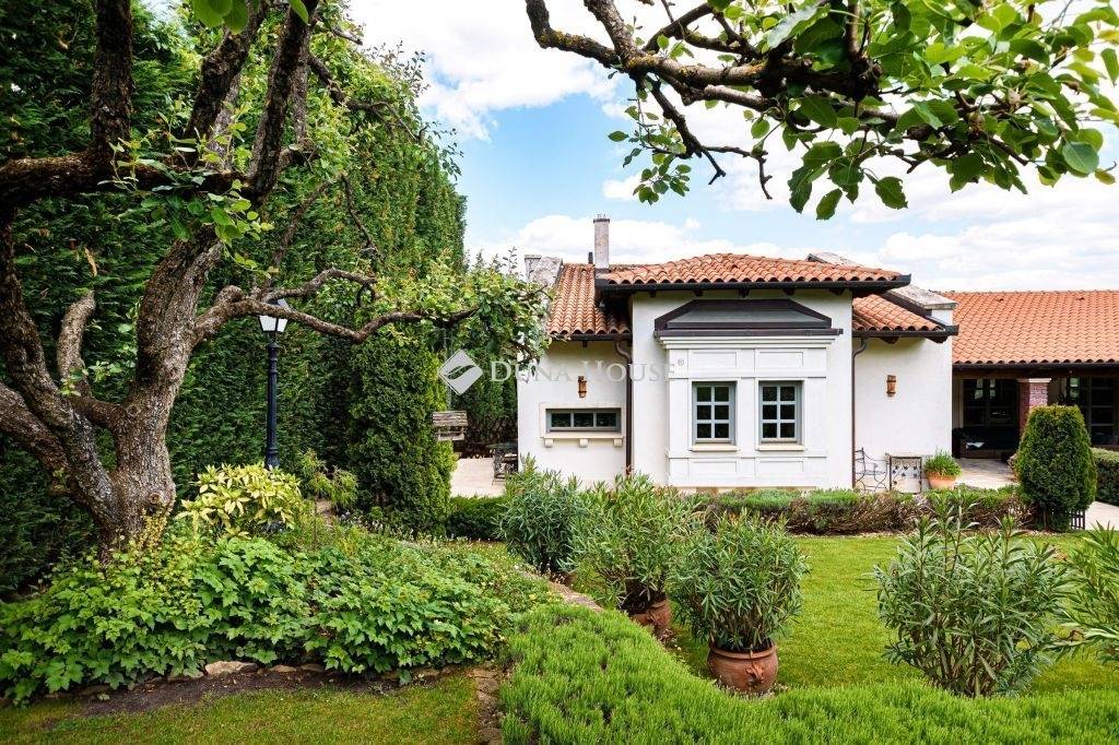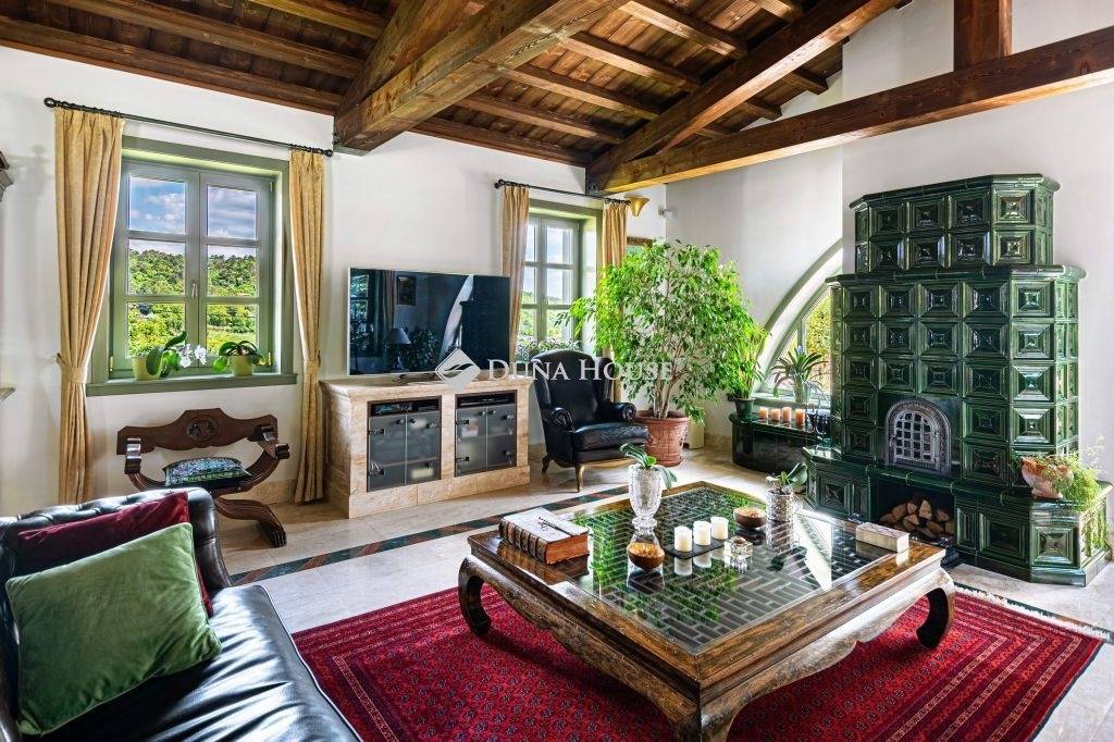 ****PROVENCE-I KÚRIA ARANYHEGYEN****III.kerületben kiváló lokációban, Budapest egyik legkedveltebb zöldövezeti részén, Aranyhegy, Péterhegy, Ürömhegy találkozásánál található ez az  igazán különleges hangulatú , provence-i jellegű kúria! A provence-i stílus kizárólag természetes anyagokat, világos színeket,mégis elegáns megjelenést képvisel.Ez igazi kuriózumnak számít a magyarországi ingatlanpiacon, így egy ilyen kúria karakteres, időtálló értékes képvisel. A provence-i hangulatot idéző parkosított kert, növényzet, árnyas terasz, kerti tó-medence különleges mediterrán hangulatot hoz a mindennapokba, anélkül, hogy elhagynánk Budapestet.A házat magas minőségi elvárások mentén 2012-ben Nívó díjas építésszel építtették meg. Az 1740 m2-es területen 370 m2 -es lakótér került kialakításra!A kétszintes ház alsó szintjén kétállásos garázs, tárolóhelyiségek, gardróbok, kazánház, wellness helyiség (jakuzzi, finn szauna,pihenő) , valamint külön lakrész (nappali, konyha, háló, fürdő, terasz) került kialakításra!Az emeleti szinten hatalmas méretű nappali-étkező-konyha, két hálószoba, gardróbok, két fürdőszoba, került kialakításra, valamint egy hatalmas 50 m2-es terasz. A nagy méretű fagerendás mennyezettel rendelkező nappali éke a gyönyörű fa tüzelésű cserépkályha.Az ingatlanban kizárólag természetes anyagok kerültek felhasználásra: mészkő, márvány, fa. A kőmunkákat a nagy múltú Reneszánsz Kőfaragó Zrt. készítette, akik kiválóan ötvözik a legmodernebb technológiákat, és a kézműves mesterségbeli tudás hagyományainak ápolását. Az eresz kézzel hajlított rézből készült különlegesség.A fűtés gázkazánnal működik, padlófűtéses rásegítéssel.További extrák: kamera,és riasztórendszer , légkondicionáló, öntözőrendszer.Irányár:990 000 000 Ft