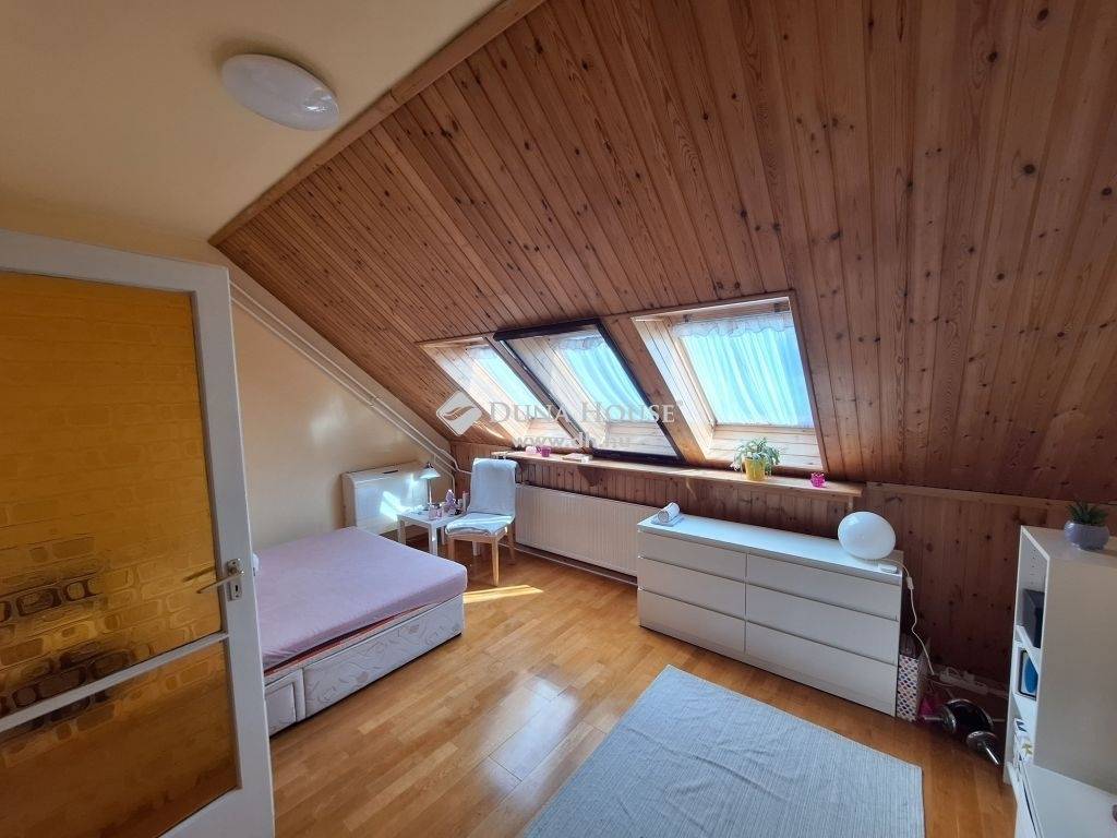 X. kerület, Kőbánya-Újhegy, gépjármű-forgalomtól mentes utcájában, zöldövezeti környezetben eladó egy saroktelken elhelyezkedő, 1980-as évek végén épült sorházi ingatlan legszélső, nagyméretű kerttel rendelkező, déli tájolású, kondenzációs-kazánnal szerelt, jó állapotú lakása. A 82 nm-es ingatlan egy önálló kertkapun keresztül közelíthető meg, ahol egy gépjármű-beállóhely is kialakításra került.A kertből egy kb. 5 nm-es előtéren keresztül jutunk a lakásba. Az előszobán keresztül érhető el a nappali, a konyha, egy fürdőszoba és egy tároló. Itt került kialakításra az étkező is. Az emeleti szinten egy közlekedőn keresztül érhető el a 2 nagyméretű hálószoba, melyek külön bejárattal rendelkeznek. Ezen a szinten szintén van fürdőszoba. Egy szinttel feljebb a tetőtér beépítésre került; jelenleg tárolási funkciót lát el, de a méreteiből adódóan akár vendégszobaként is használható.A 80-as évek végén épült társasház jó állapotban van. A bejárati ajtón kívül a nyílászárókat már kicserélték és 2021-ben kondenzációs kazán került beépítésre. Minden közmű egyedi mérésű. A kényelmes méretű kertgondozott.Az ingatlan infrastruktúrája kiváló. A közelben több általános iskola, óvoda és bölcsőde is megtalálható. A szomszédban játszótér, a közelben kutyafuttató és több park is van.Tömegközlekedéssel Kőbánya-Kispest 10 perc, az Örs vezér tere 15-20 perc alatt elérhető.