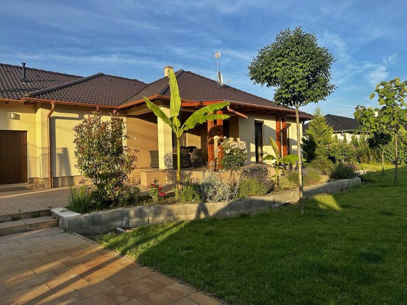 Energetikai jellemzők: kondenzációs kazán padlófűtéssel, 30-as téglafal, 15 cm homlokzat szigetelés, szórt födémszigetelés, 3 rétegű nyílászárók (elektromos redőnnyel) Egyéb: Paradox riasztórendszer távoli eléréssel, elektromos kapu és garázsajtók, öntözőberendezés fúrt kútról, (2db kerti csap fúrt kútról, 2 kerti csap városi vízről) közel 250 nm térkő.