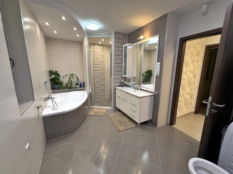 Tágas fürdőszoba áll rendelkezésre, ami különösen praktikus a reggeli rohanás során, amikor mindenki egyszerre készülődik.