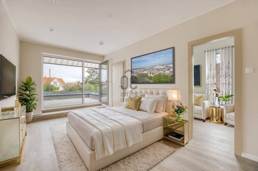 Az ingatlanban egyedi tervezésű beépített LED hangulatvilágítás, mindenhol hatalmas ablakok. Mennyezethűtés, levegőszűrés, központi porszívó, csak tovább növeli az ingatlan értékét.