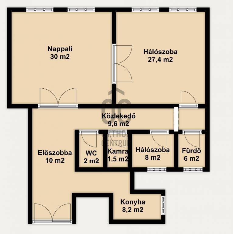 - 2. emeleti, nettó 102 m2-es, átlagos állapotú