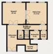 - Felosztása: előtér-közlekedő, konyha-étkező, nappali, hálószoba, hálószoba, fürdőszoba, WC, kamra