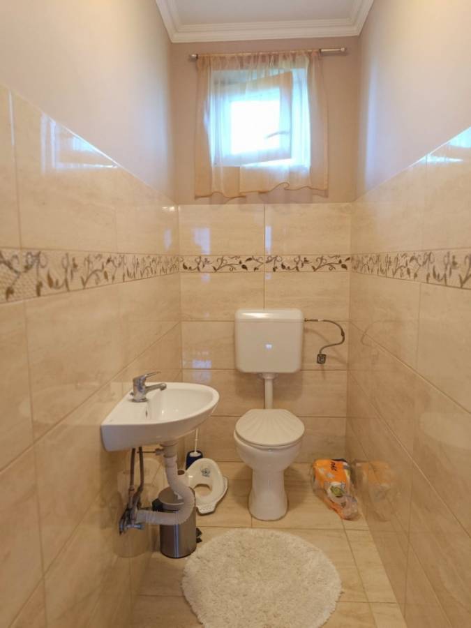 A belső tér praktikus és elegáns, beépített konyhabútorral, fa födémmel és 30 cm-es üveggyapot szigeteléssel. Az ingatlan kelet–nyugati tájolású, így a nap minden szakában világos és barátságos.