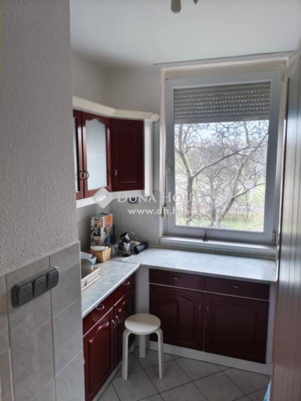 Kis közlekedőből nyílik először bal kéz felől a nagy ablakos konyha, a beépített bútor természetesen a vételár részét képezi (a folyosón lévő szekrénnyel együtt). Tovább haladva van a tágas nappali nagy ablakokkal és redőnnyel ellátva, innen lehet kijutni az elektromos biztonsági ráccsal is ellátott erkélyre, ahonnan kellemes kertvárosias hangulat tárul elénk. A lakás felújított állapotú, a szobák parkettásak, a többi helyiségben járólap van.