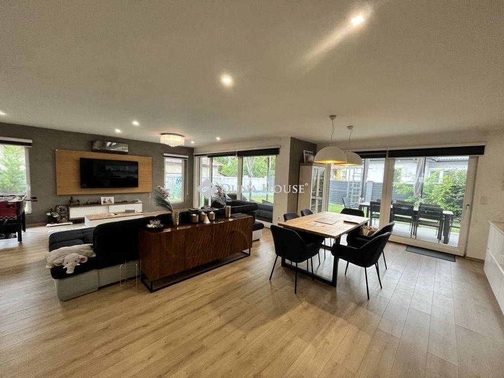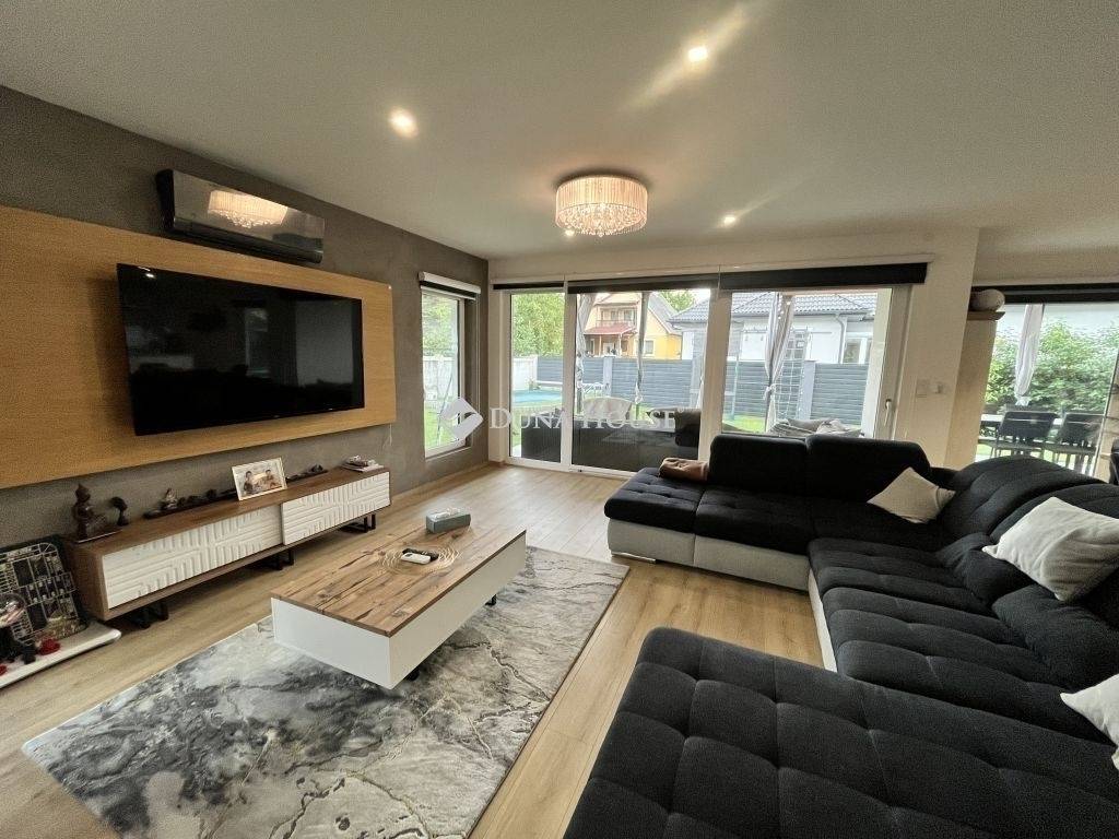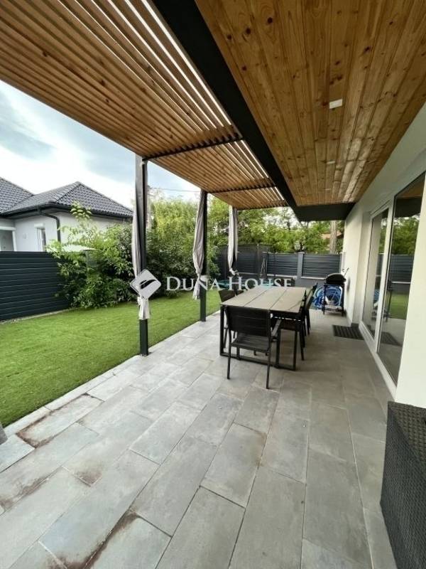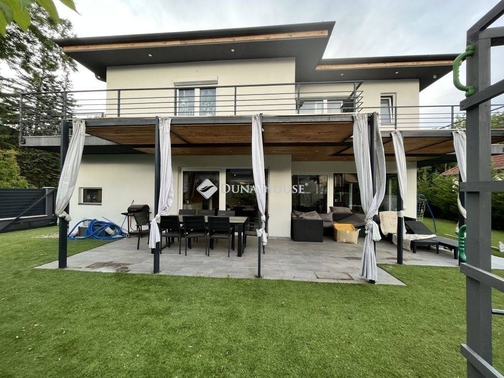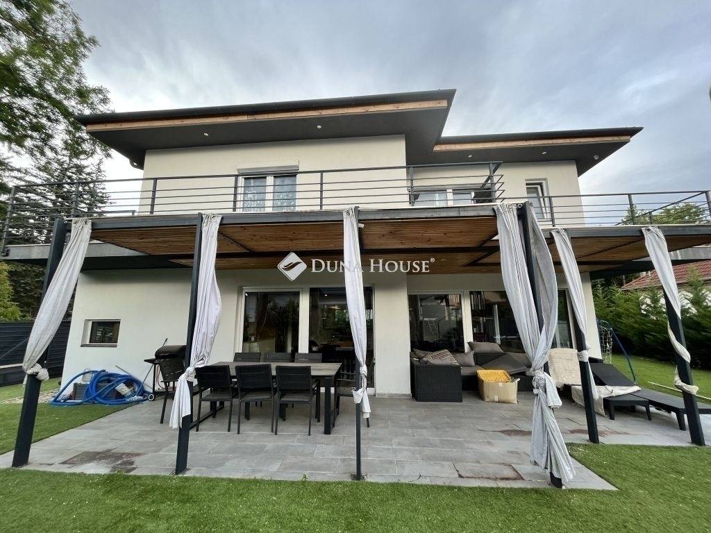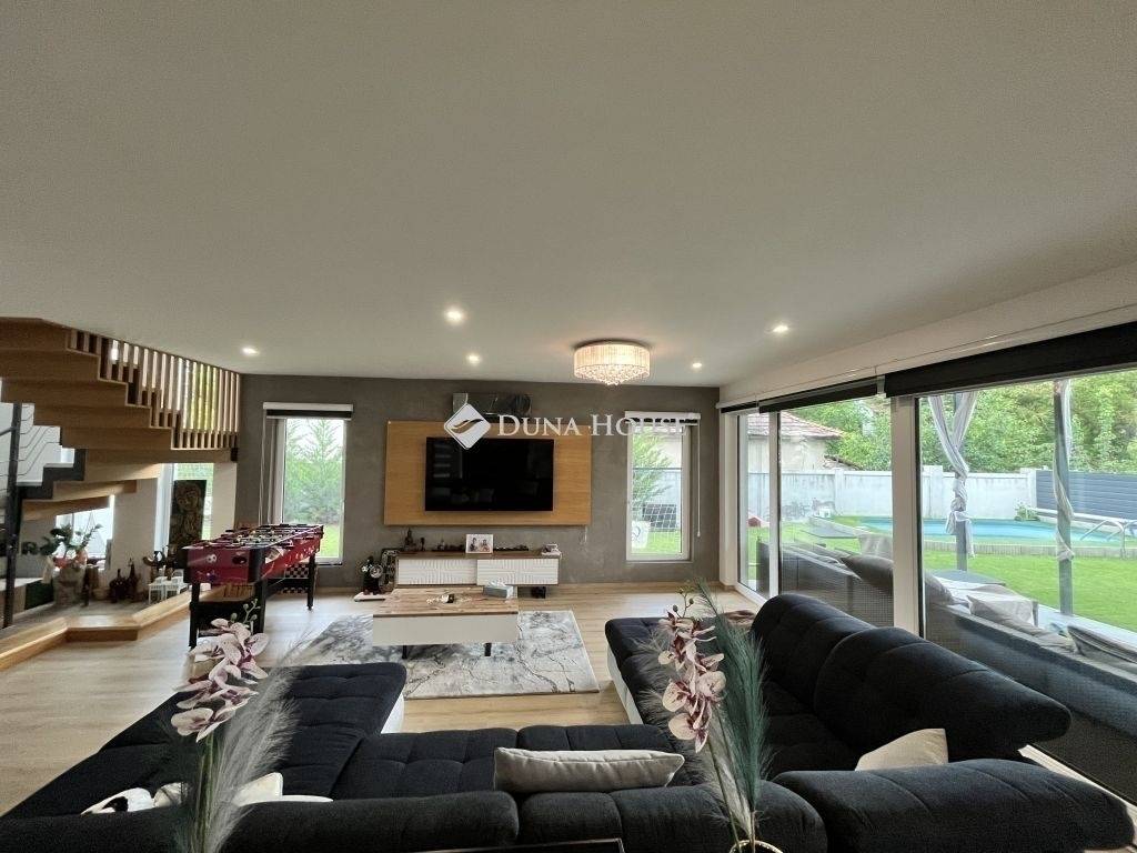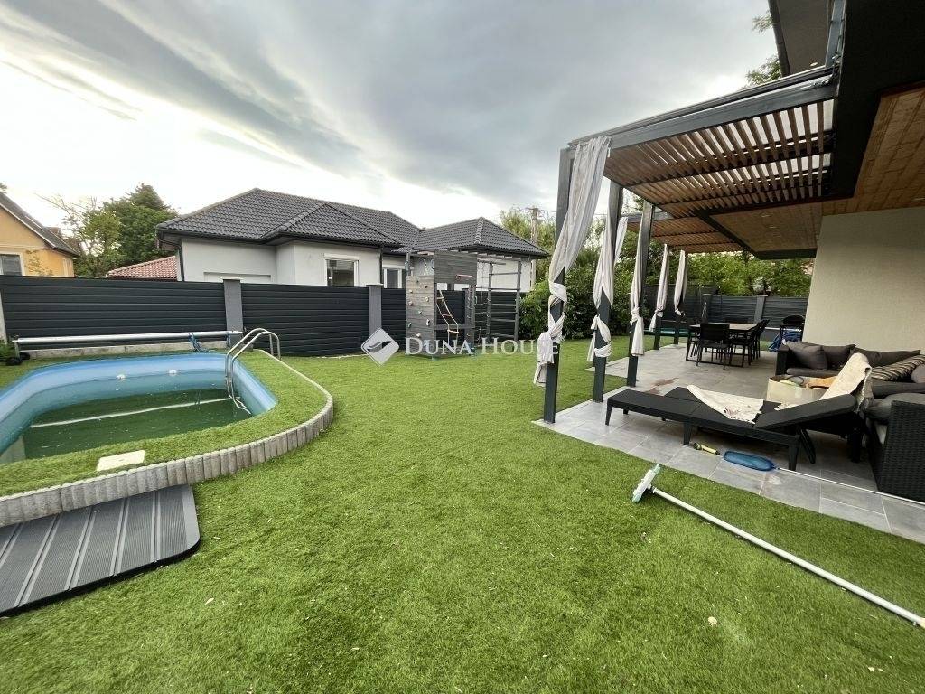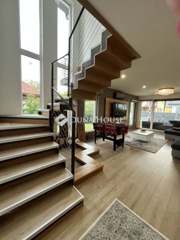 DUNAKESZI PRÉMIUM KATEGÓRIÁS CSALÁDI HÁZ TELJES BERENDEZÉSSEL ELADÓ!Kiváló lokáció, modern technológia, luxuséletérzés 211 m²-en + több mint 100 m² terasz!Eladásra kínálunk Dunakeszi egyik legkeresettebb, csendes, mégis jól megközelíthető részén egy 2019-ben épült, kétszintes, acélvázas könnyűszerkezetes, kiváló állapotú családi házat, teljes berendezéssel, azonnali költözéssel!Főbb adatok: hasznos alapterület: 211,51 m², ebből fűtött, kétállásos garázs: 30,35 m². Teraszok összesen: 108,92 m². Telek: 512 m².Földszint: tágas, egybefüggő nappali + étkező + modern konyha, vendégszoba, fürdőszoba WC-vel, közvetlen belső bejárattal rendelkező, fűtött garázs.Emelet: tágas gyerekszoba, külön fürdőszoba és WC, hálószoba saját fürdővel és WC-vel, mosókonyha, külön gardróbszoba.Külső tér, kert: gondozásmentes, holland pázsittal telepített kert, medence és napfényes, nagy méretű terasz, parkolás az utcán és a kertben is több autónak.Műszaki tartalom, extrák: acélvázas könnyűszerkezet energiatakarékos, gyorsan felfűthető; elektromos fűtés NOBO panelekkel; 3 klímaberendezés; a ház teljes berendezéssel együtt eladó minőségi bútorzattal, gépesített konyhával.Lokáció minden karnyújtásnyira: óvoda, iskola, gyógyszertár, bevásárlási lehetőségek a közelben. Nyugodt, családbarát környezet, Budapest könnyen elérhető.Ez az ingatlan tökéletes választás azoknak, akik kompromisszummentes, stílusos és kényelmes otthont keresnek egy nyugodt, jól ellátott környezetben. Érdeklődjön bizalommal, ne maradjon le erről az egyedülálló lehetőségről!Banki független hiteltanácsadással állok rendelkezésére!
