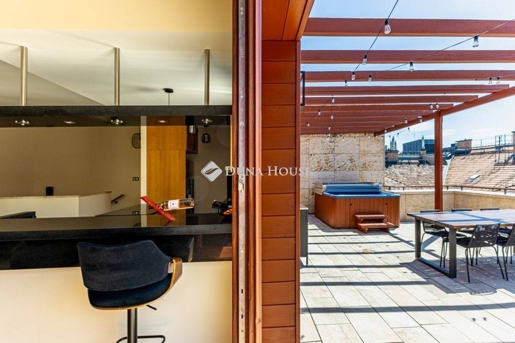 így a társasági életet élők kompromisszumok nélkül élvezhetik a lakás előnyeit, amit a hatalmas méretű terasz és az itt található jacuzzi tesz igazán unikálissá és koronáz meg.