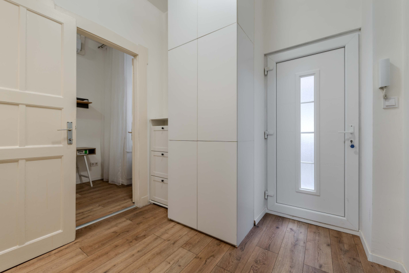 Extrák: Beépített bútorok, szekrények, minimalista kialakítás, biztonsági ajtó és tehermentes státusz – azonnal birtokba vehető.