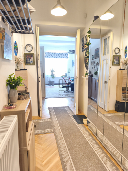 A szecesszió stílujegyeiben épült az 1910-es évek elején a ház, ahol ez az igényesen felújított 99 m2-es lakás található. A három lifttel rendelkező épület kitűnően karbantartott, tiszta, csendes, kulturált. A lakás magasan, még félemelet felett, az első emeleten helyezkedik el, és hatalmas ablakainak köszönhetően rendkívül világos. 2022-ben teljeskörű felújításon esett át. A fűtést biztonságos és takarékos kondenzációs Viessmann kazán szolgáltatja. A nappaliba és a két hálószobába hütő-fűtő klíma is beszerelésre került .