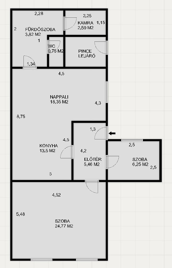 Az udvarban 3 lakás található, közös kapubejáróval, telekmegosztási szerződéssel.