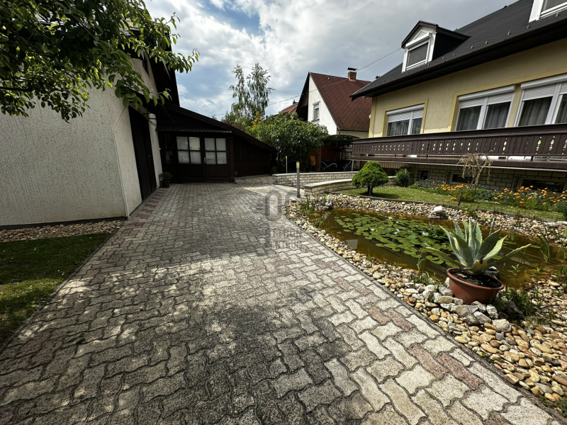 - A telek parkosított, kis tó is megtalálható itt. A garázsig vezető út térkővel van lerakva.