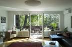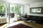 Tágas nappali étkező konyha egy légtérben, klímával.