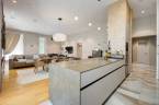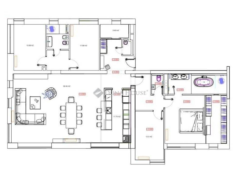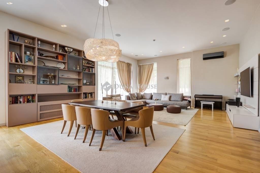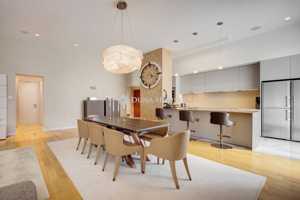 A nettó 208 nm alapterületű lakás kialakítása kiváló, központja a nappali-konyha-étkező amely hatalmas üvegfelületeinek köszönhetően világos, napsütötte, 3,75 méteres belmagasságával a belvárosi klasszikus nagypolgári lakások eleganciáját idézi.