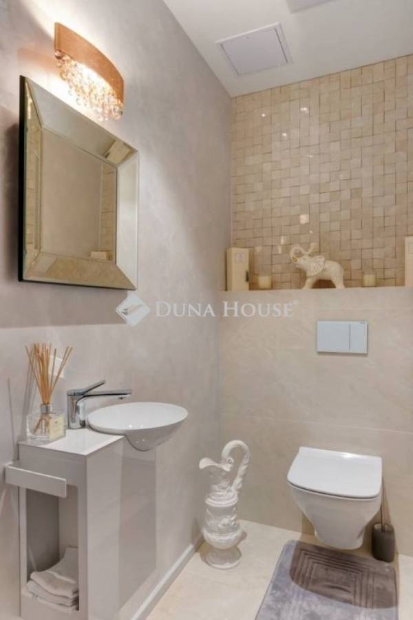 Az eladásra kínált ingatlan kis lakóközösségű lakópark legutolsó házának földszintjén helyezkedik el, olyan intim, privát szférát biztosítva, amely valóban egy családi ház érzetét adja, hiszen senki sem lát a kertre vagy a teraszra, mégis egy társasház kényelmi szolgáltatásit élvezhetjük.