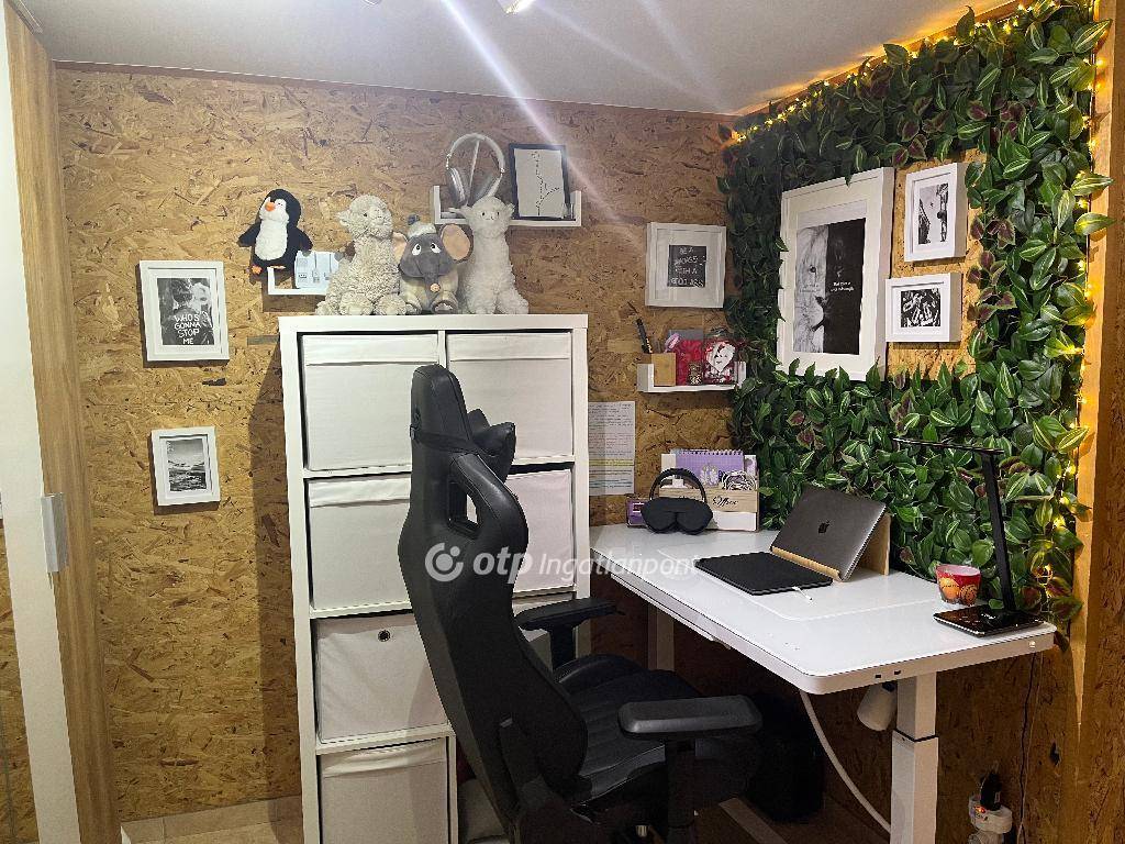 A nagy házzal szemben a telek másik oldalán található egy kisebb, 38 nm-es ház, amely 3 éve lett kialakítva, újszerű állapotú, ízlésesen es praktikusan berendezve. Benne található egy tágas fürdőszoba, amerikai konyhás nappali, hálószoba és dolgozósarok. Felnőtt gyermek vagy fiatal pár részére vagy idős szülő számára ideális lehetőség, hogy a családdal együtt, de mégis elkülönülten lakjon. De irodának vagy rendelőnek is kiváló.