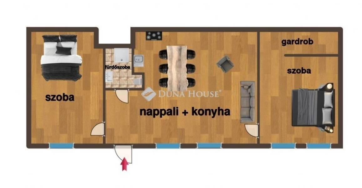 2 hálószoba + 1 gardrób