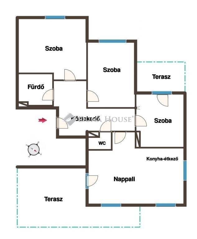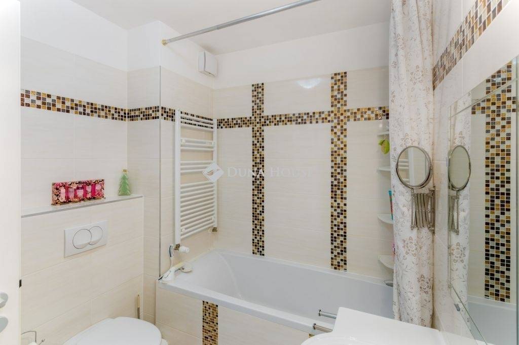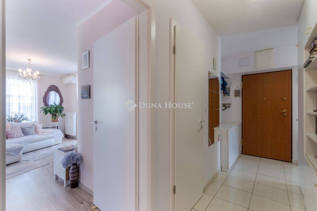 A lakás körbe napozott, amerikai konyhás nappalival és még 3 külön bejáratú szobával, egy külön wc -vel és egy kádas fürdőszobával wc-vel rendelkezik. Az közlekedőben beépített szekrény található. A nyílászárók hang- és hőszigeteltek, szúnyoghálóval és black-out rolók is felszerelésre kerültek. A téli fűtési költség alacsony, egyedi mérés alapján történik az elszámolás. Nyáron pedig két inverteres klíma hűti a helyiségeket. A 27 nm-es terasz egy automata vezérlésű, osztrák-olasz gyártmányú, egyedi méretre készült árnyékolóval felszerelt, a kisebb terasz is árnyékolóval védett.