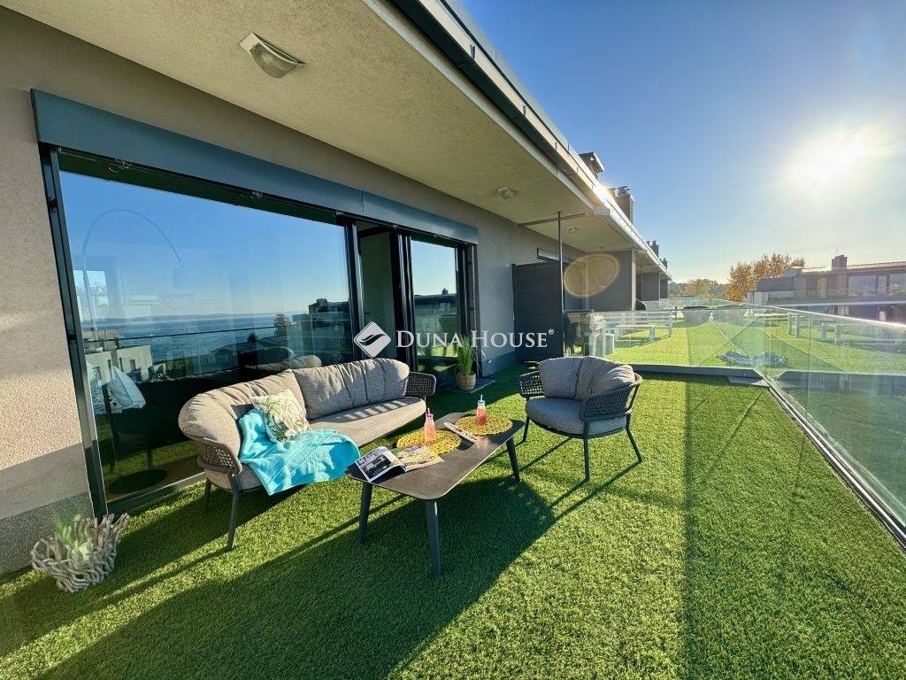 +++ SIÓFOK LUXUS, PANORÁMÁS PENTHOUSE LAKÁS +++SIÓFOKON kínálom megvételre, 2012 épült, közvetlen BALATONPARTI TÁRSASHÁZBAN ezt a PANORÁMÁS PENTHOUSE lakást.Az ingatlan 73 négyzetméter a hozzá tartozó 50 négyzetméteres terasszal.Az épület 2012-ben tégla falazattal épült, szigetelt.Aluminium nyílászárókkal rendelkezik, három rétegű üvegezéssel, zsaluziákkal, szúnyoghálókkal.Fan Coil hűtés és fűtés, napelem.A lakás elosztása a következő:tágas 35 m2 nappali étkező konyha, kijárat a balatoni panorámás teraszra.két nagy méretű szoba, mindkettőből teraszkapcsolat.fürdőszoba, sarokkáddal és wc-vel.vendég wc.folyosó, beépített óriási tároló szekrényekkel.panorámás teraszA lakóparkban, úszómedence, gyerekmedence és játszótér található.Saját partszakasszal, kikötővel, privát strandrésszel rendelkezik.Portaszolgálat vigyáz az egész terület nyugalmára.Az ingatlanhoz egy darab saját parkolóhely is tartozik, melyet az ár nem tartalmaz.A parkoló hely irányára: 7 millió huf.Amennyiben felkeltettem érdeklődését, keressen bizalommal elérhetőségeimen.